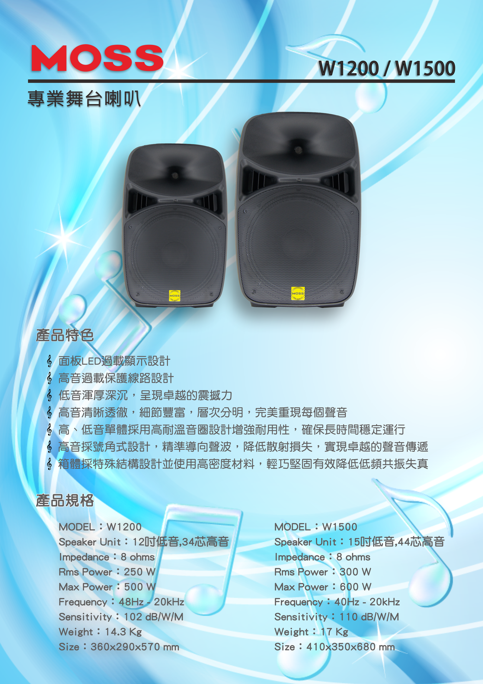 2025-02-07-新品上市-專業舞台喇叭 MOSS W1500 /W1200